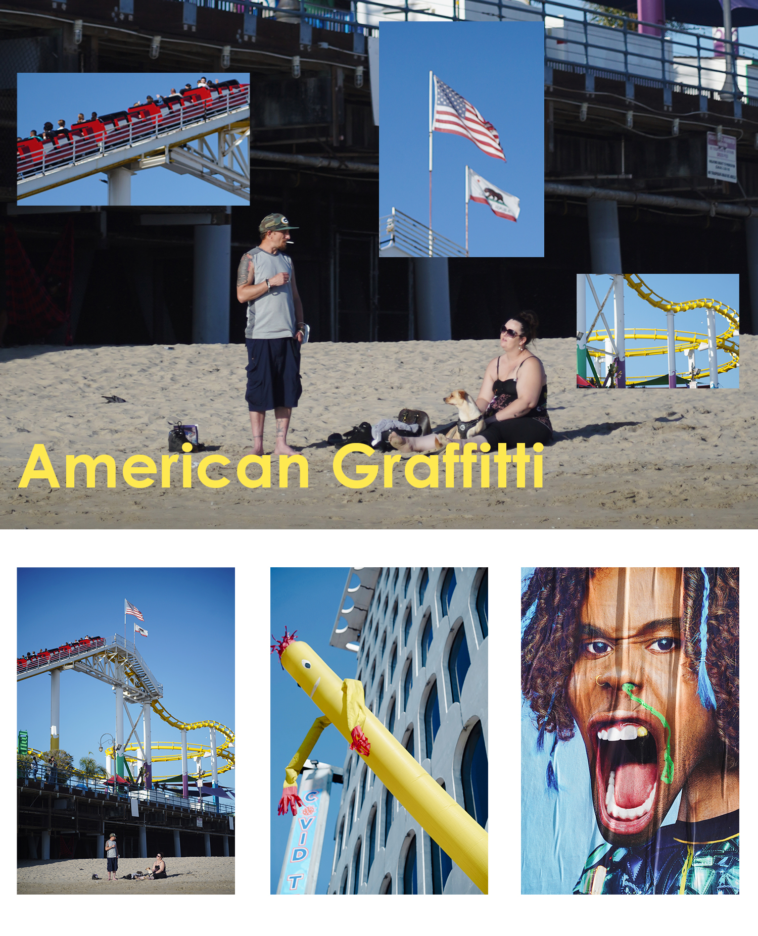 《American Graffiti》是我在UCSB的新好莱坞电影课程(New Hollywood Cinema)中看的第一部电影。影片由曾拍摄星球大战的著名导演乔治·卢卡斯执导,以六十年代的加州为背景,运用多线叙事将四位普通青年的青春凝聚在了一个晚上。影片像是导演的一部青春自传,讲述了困惑的年轻人们纯真浪漫的冒险。这本摄影集是我与这部影片的一次对话。从1962移步至2022年的加州,新的风景铺展开来,而我的冒险故事在这里仍在在上演,同时与美国文化的一次碰撞,呈现出新的视角。